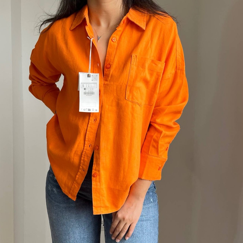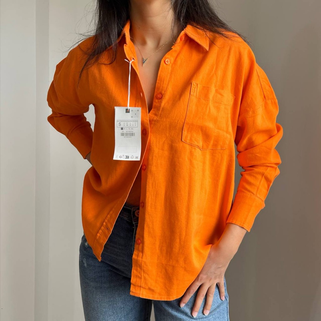شومیز لینن نارنجی، ترکیبی از راحتی و استایل مدرن برای بزرگسالان است. پارچه لینن سبک و خنک، احساس سبکی و تنفسپذیری را در طول روز فراهم میکند و رنگ نارنجی جلوهای شاد و جذاب به استایل شما اضافه میکند.
