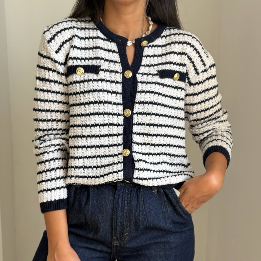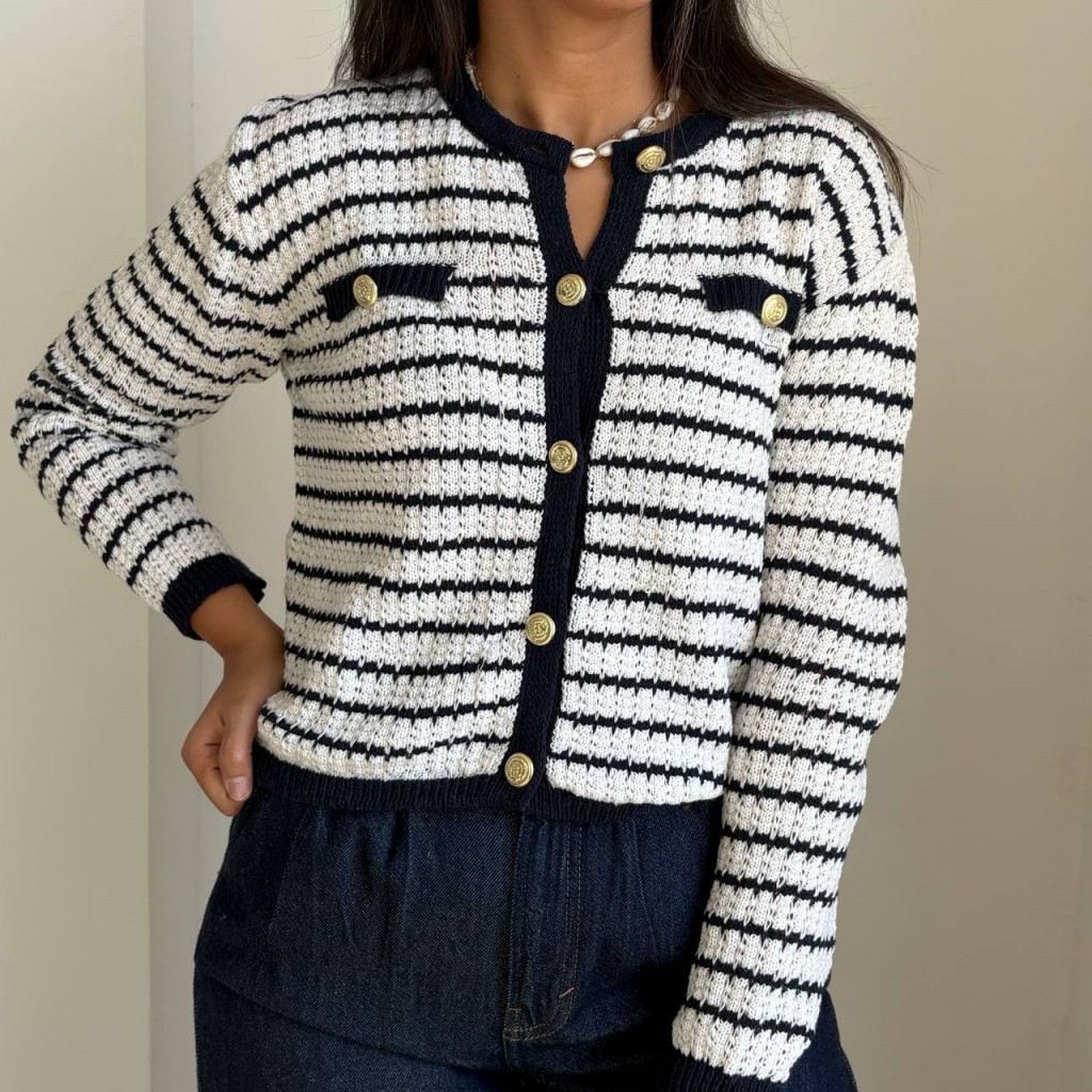 جکت بافت راه راه جیبدار