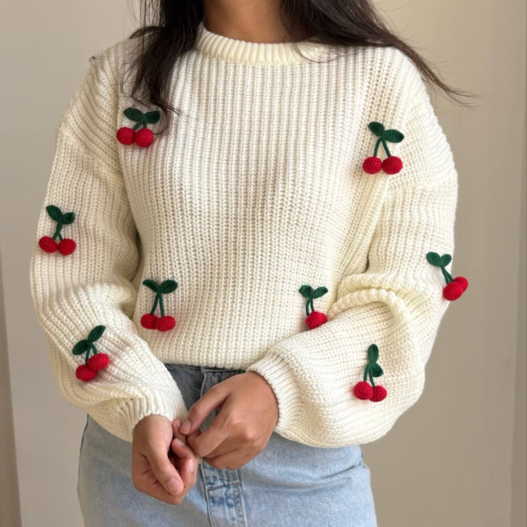 بافت با طرح آلبالو با طراحی جذاب و بافت لطیف، یک گزینه زیبا و راحت برای روزهای سرد سال است. بافت ظریف و سبک آن باعث میشود روی بدن خوشفرم بنشیند و بدون ایجاد سنگینی، گرمای لازم را فراهم کند. طرح آلبالو هویت خاصی به لباس میدهد و آن را از مدلهای ساده و تکراری متمایز میکند؛ مناسب برای کسانی که به جزئیات خاص و ظریف در استایل خود اهمیت میدهند.