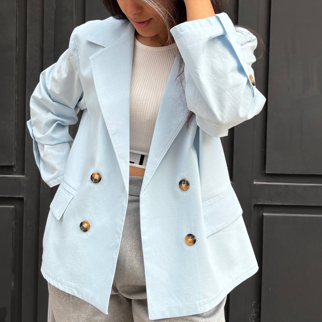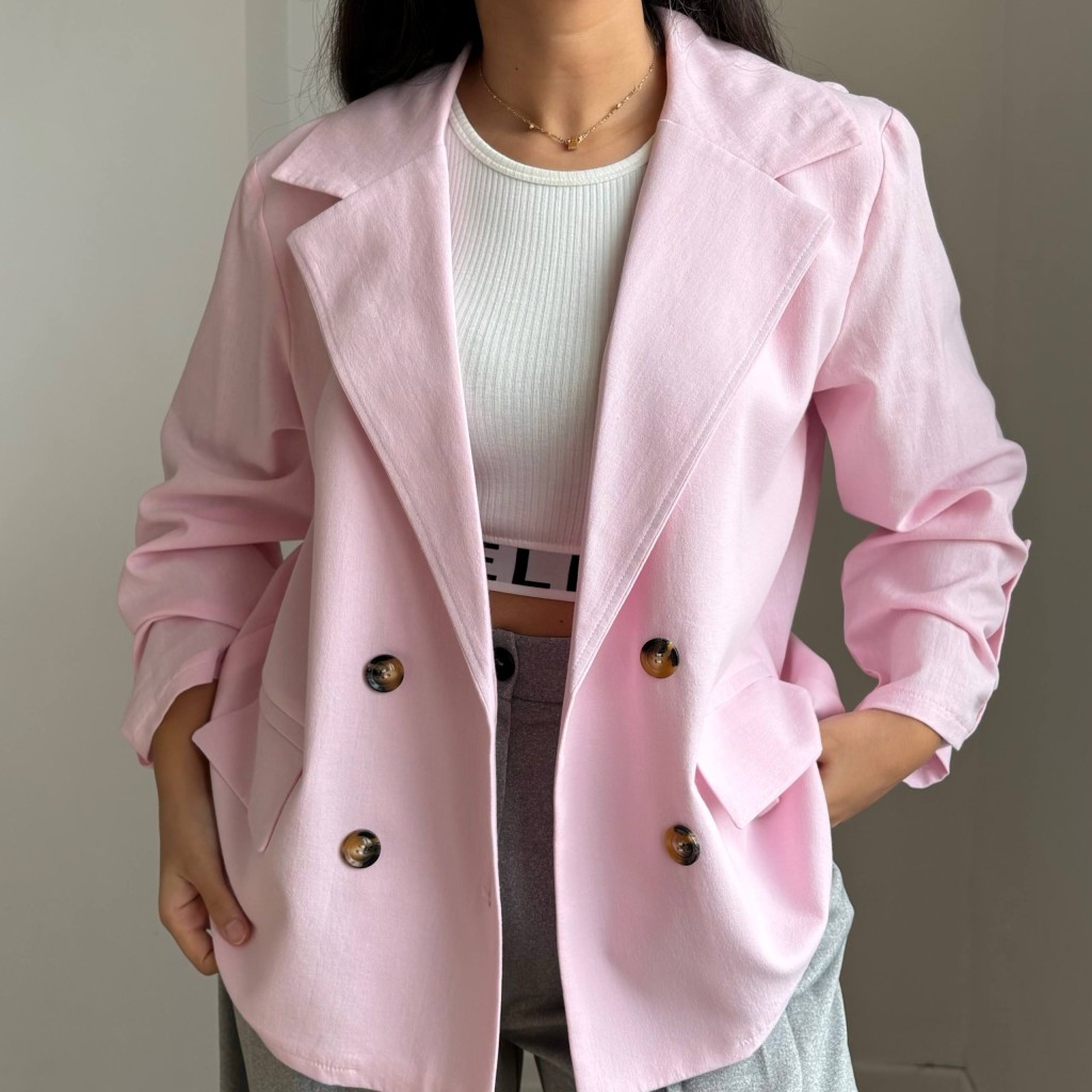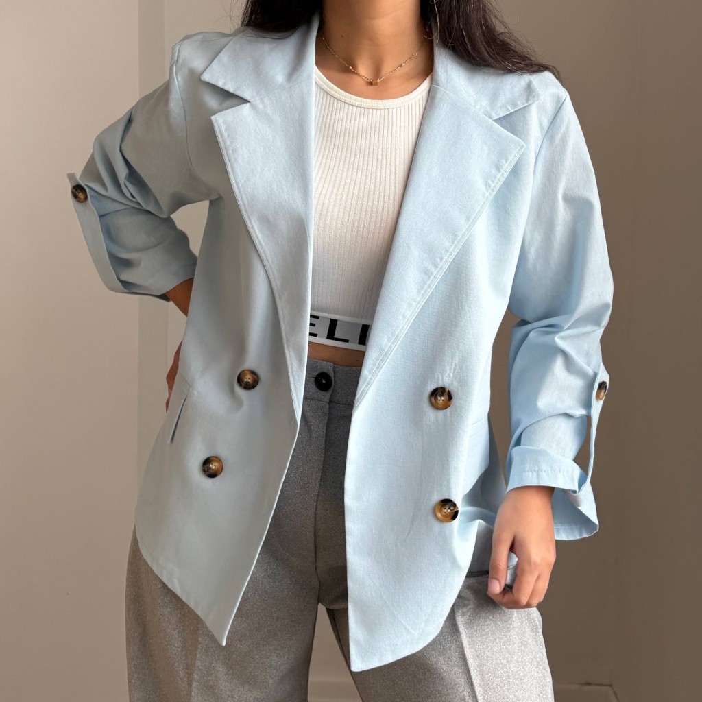 این کت بهراحتی با شلوار لینن، جین یا دامنهای ساده ست میشود و استایلهایی از کژوال تا نیمهرسمی را پوشش میدهد. کیفیت دوخت و ثبات پارچه باعث میشود لباس پس از استفاده و شستوشو فرم خود را حفظ کند. کت لینن آیتمی همهکاره برای کمد لباس بزرگسالان است که در فصول گرم کاربرد بالایی دارد.