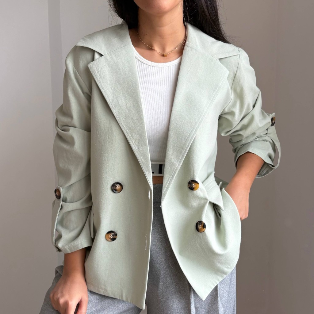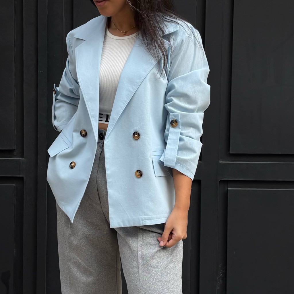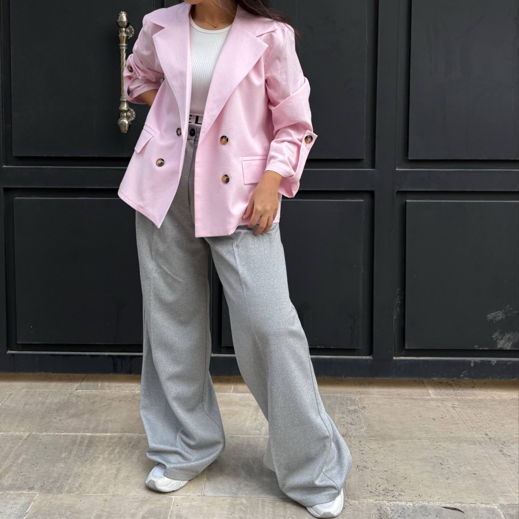 این کت بهراحتی با شلوار لینن، جین یا دامنهای ساده ست میشود و استایلهایی از کژوال تا نیمهرسمی را پوشش میدهد. کیفیت دوخت و ثبات پارچه باعث میشود لباس پس از استفاده و شستوشو فرم خود را حفظ کند. کت لینن آیتمی همهکاره برای کمد لباس بزرگسالان است که در فصول گرم کاربرد بالایی دارد.