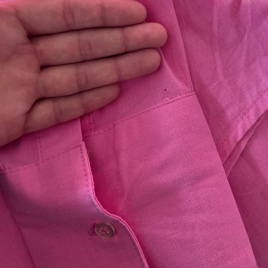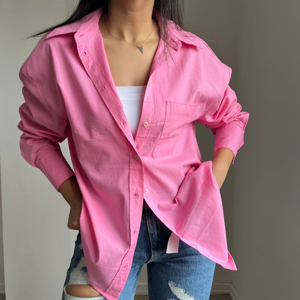 شومیز لینن صورتی با رنگ ملایم و لطیف، جلوه‌ای زنانه و آرام به استایل روزمره شما می‌بخشد. پارچه لینن با کیفیت، حس سبکی و تنفس‌پذیری را فراهم کرده و راحتی کامل در طول روز ایجاد می‌کند.