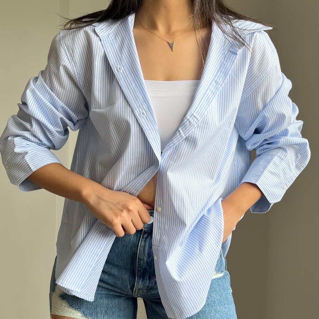 شومیز آبی راه راه