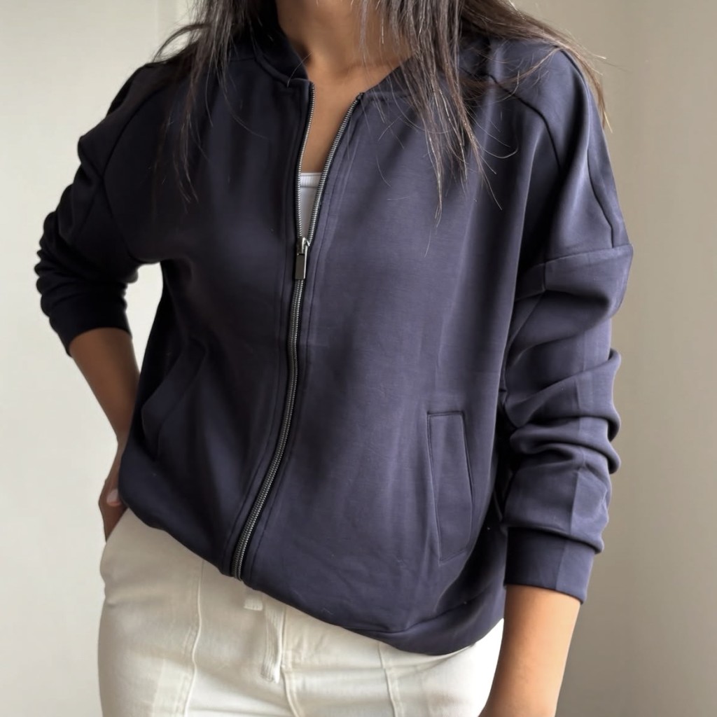 این جکت به راحتی با شلوار جین یا لگینگ ست میشود و آزادی حرکت کامل را حفظ میکند.