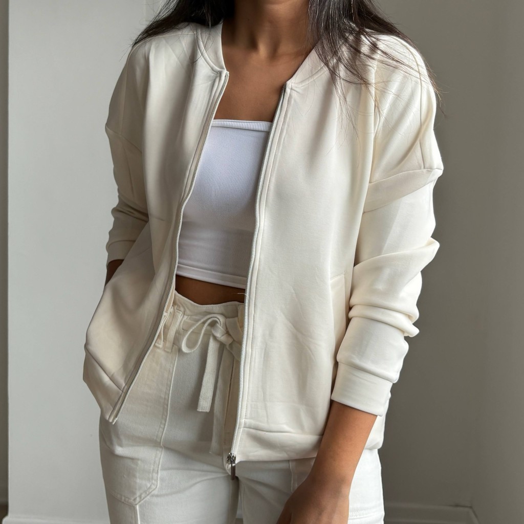 این جکت به راحتی با شلوار جین یا لگینگ ست میشود و آزادی حرکت کامل را حفظ میکند.