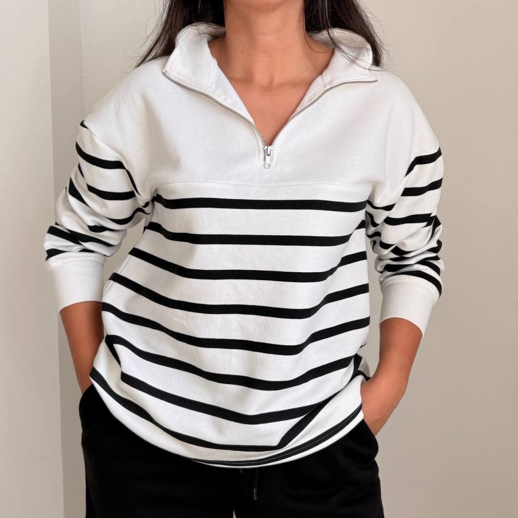 دورس نیمزیپ تو کرکی، انتخابی گرم و راحت برای روزهای سرد است. جنس کرکی داخلی، گرما و نرمی بالایی فراهم میکند و طراحی نیمزیپ امکان تهویه و تنظیم راحتی را به شما میدهد.