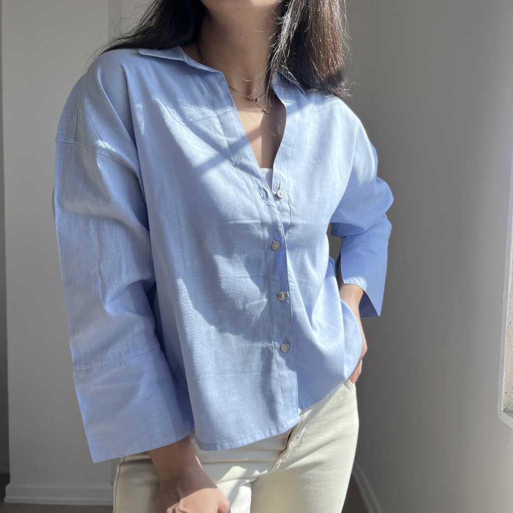 شومیز لینن آبی