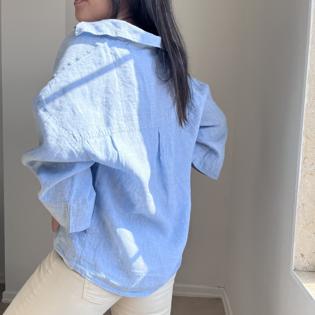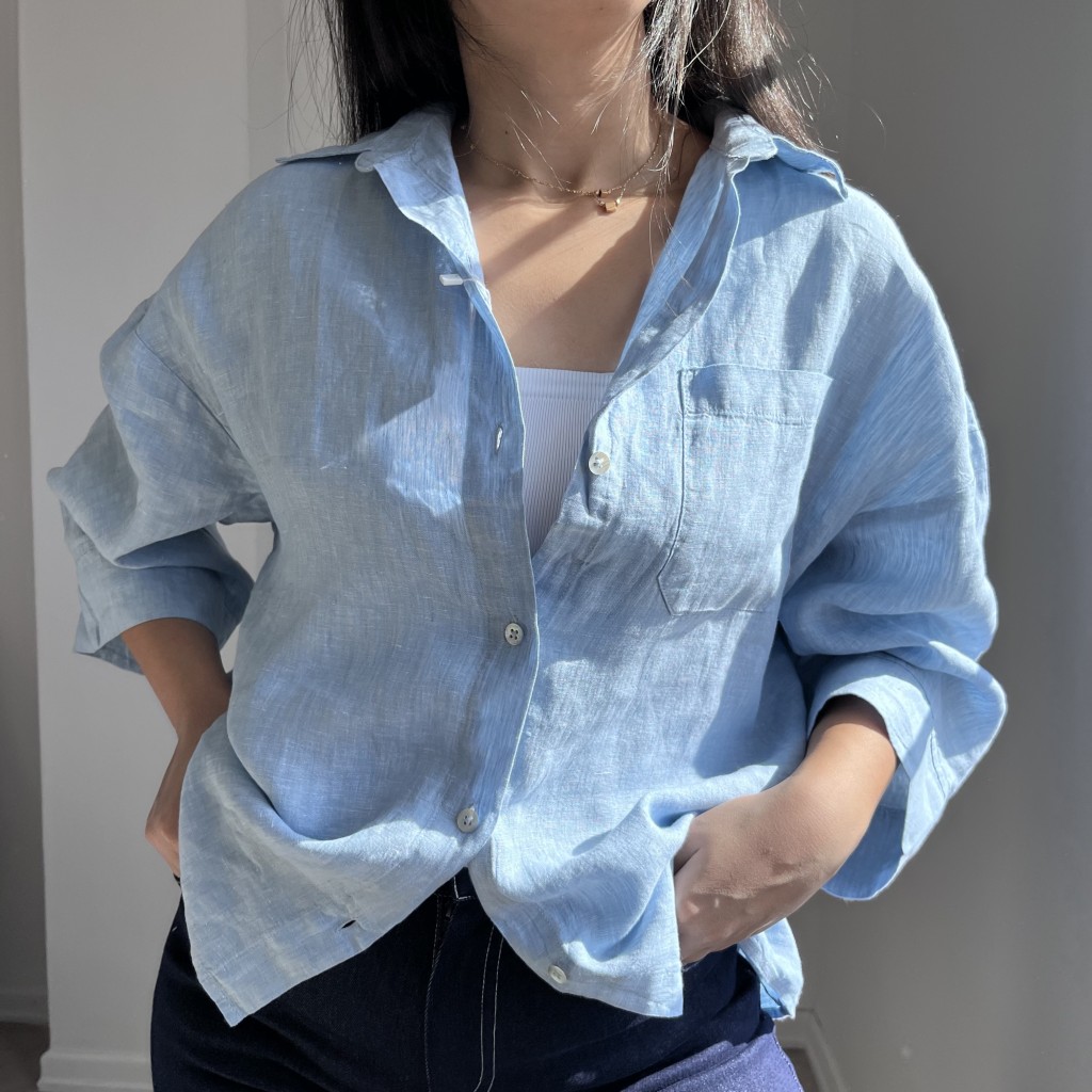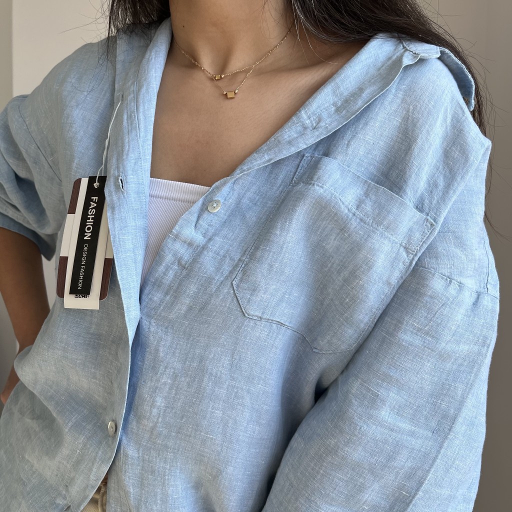 این شومیز بهراحتی با شلوارهای جین یا پارچهای ست میشود و برای فصول گرم سال انتخابی کاربردی و خوشاستایل است. ترکیب سادگی طراحی با بافت خاص لینن، جلوهای طبیعی و شیک ایجاد کرده که در عین راحتی، ظاهری مرتب و حرفهای به شما میدهد.