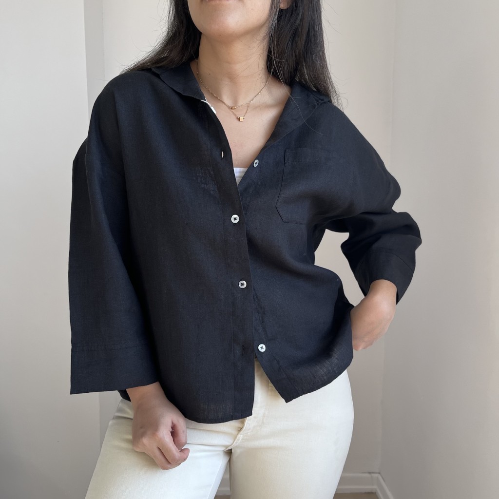 شومیز لینن مشکی کد 2653