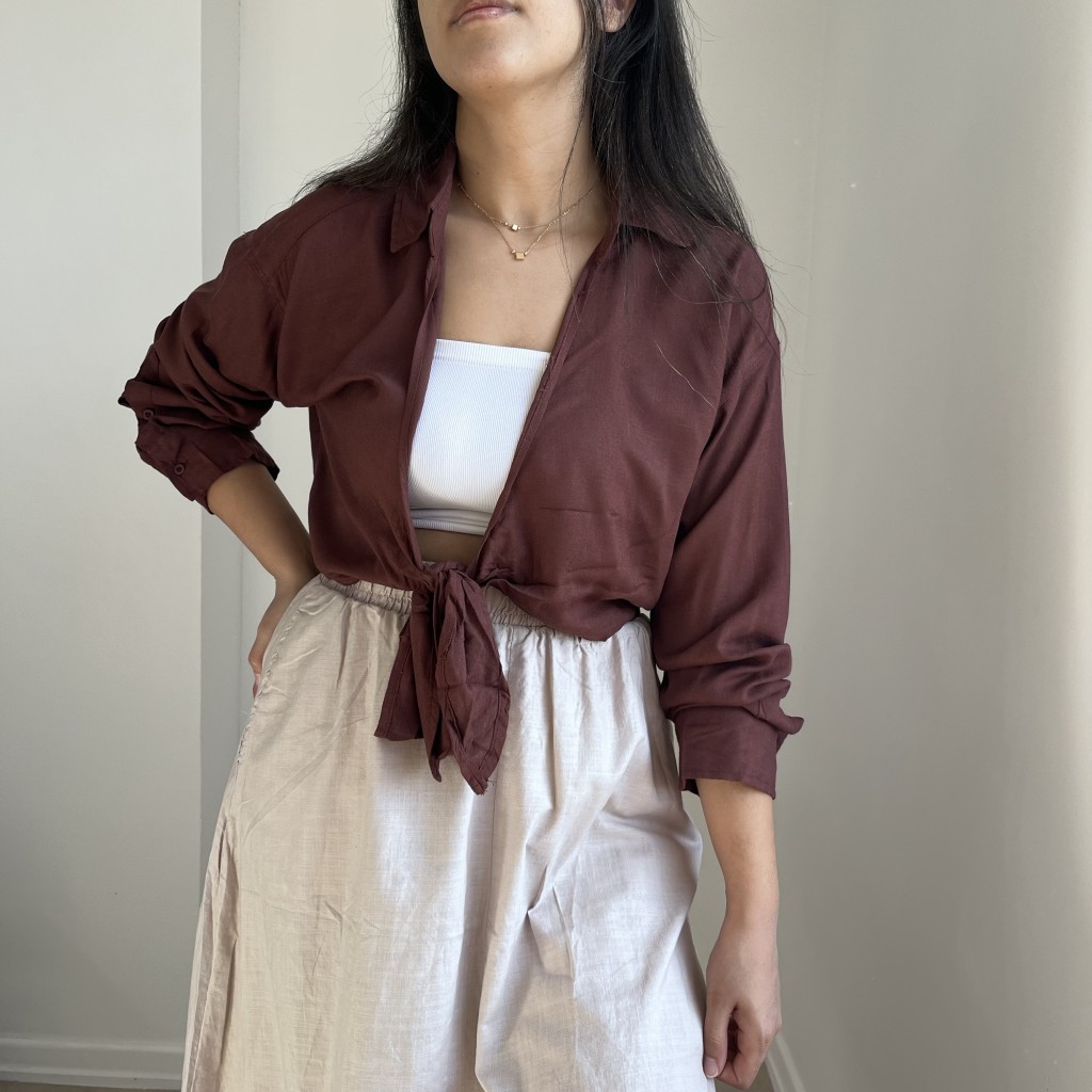 این شومیز بهراحتی با شلوارهای جین یا پارچهای ست میشود و برای فصول گرم سال انتخابی کاربردی و خوشاستایل است. ترکیب سادگی طراحی با بافت خاص لینن، جلوهای طبیعی و شیک ایجاد کرده که در عین راحتی، ظاهری مرتب و حرفهای به شما میدهد.
